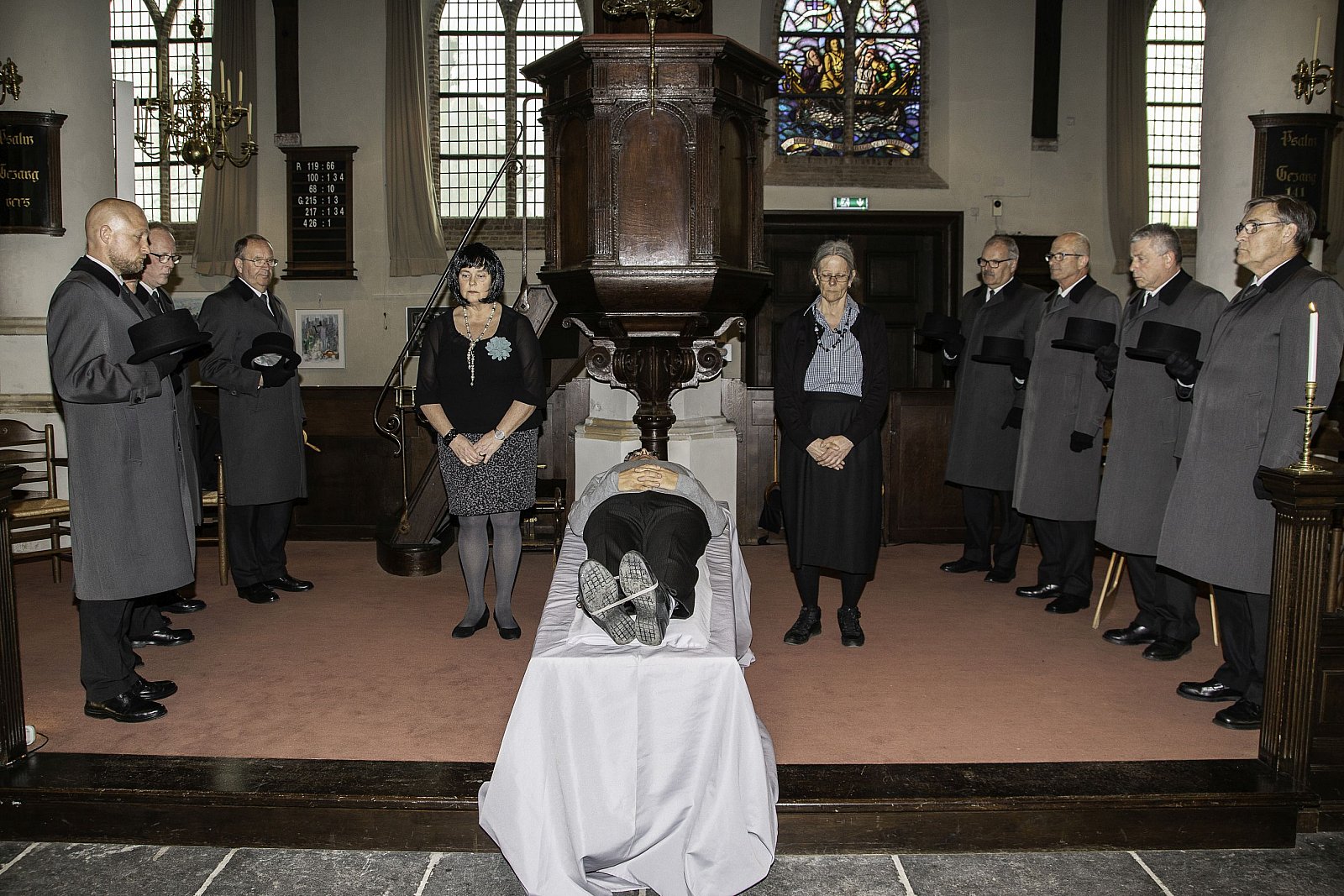De uitvaartleider heeft met de twee duidelijk een uitdaging en... wat doet die gepensioneerde chauffeur in dit verhaal...? Hij maakt het er in ieder geval niet makkelijker op.